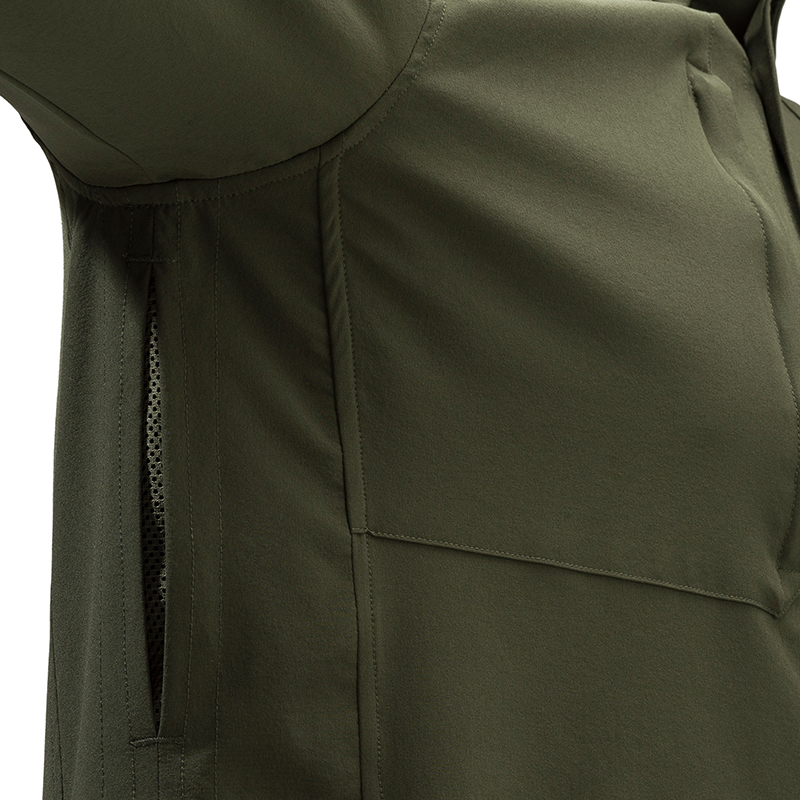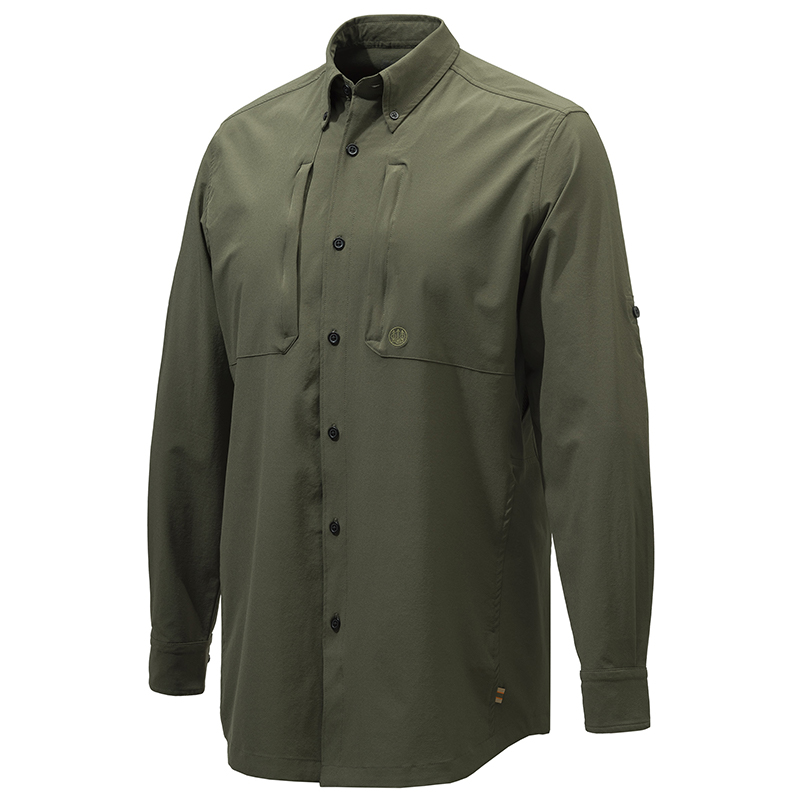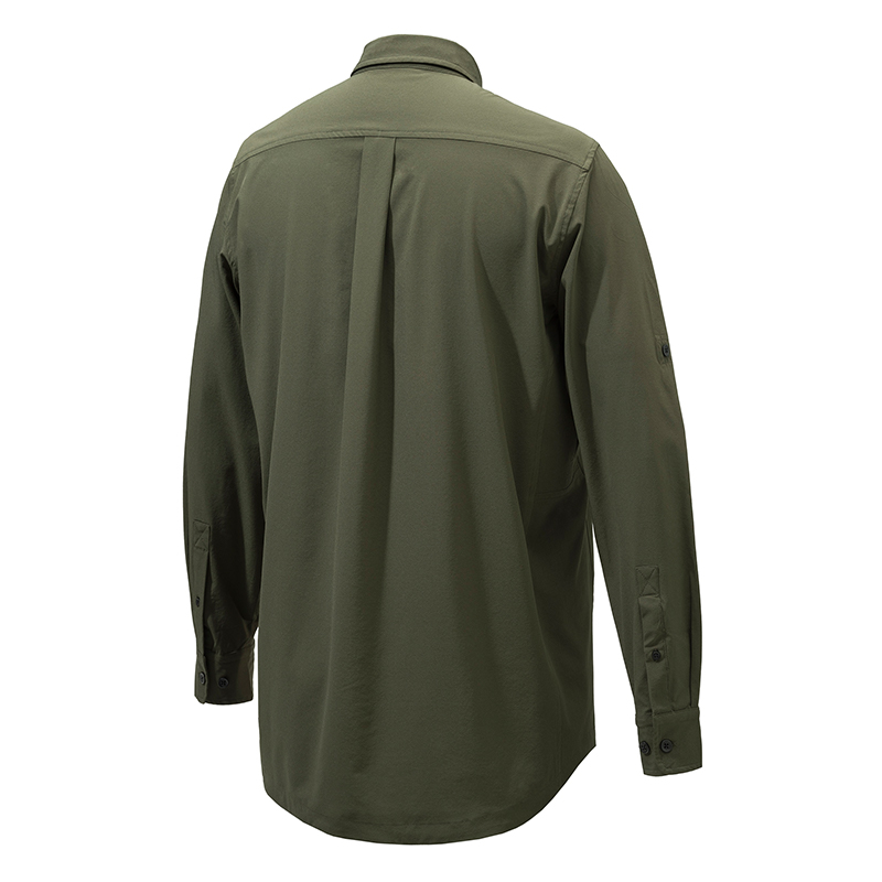 Könnyű férfi ing poliészterből, súlya 123 g/m2. Úgy készült, hogy magas hőmérsékleten is hűvös legyen.Az elülső zsebek növelik a funkcionalitást. A karok alatti szellőzés növeli a légáteresztő képességet és a frissességet.