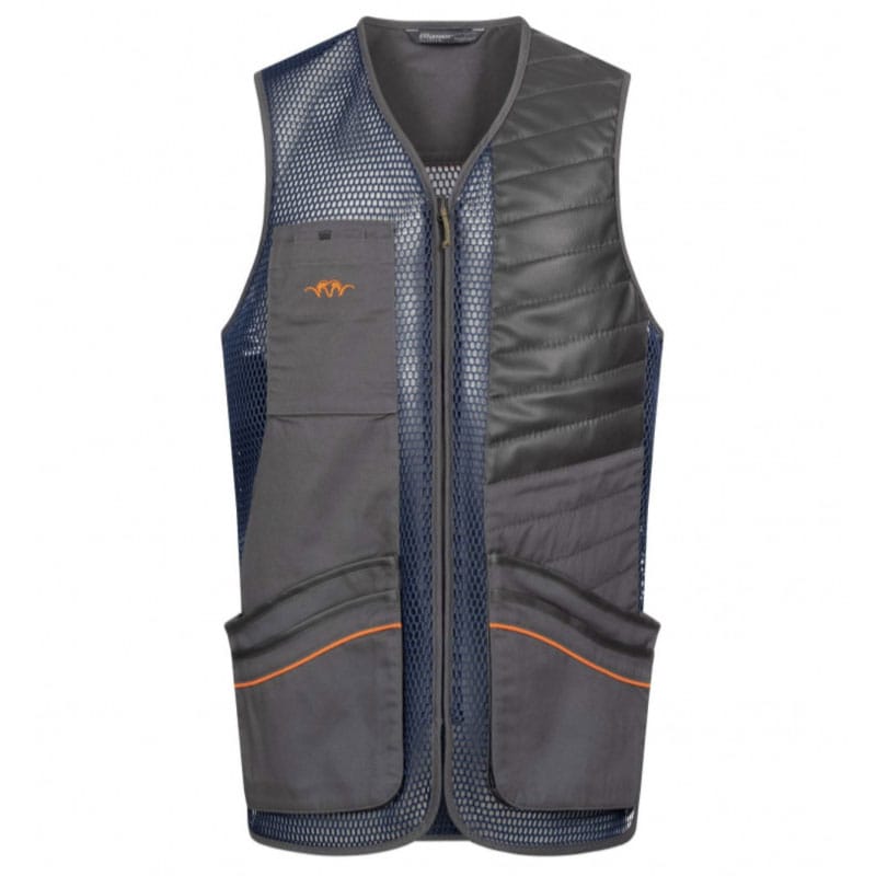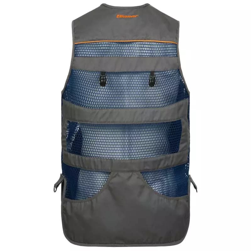 Ez a lövészmellény kifejezetten versenycéllövészethez lett kifejlesztve. A jobb vagy bal oldalon elhelyezett bőrbetét támogatja az intuitív fegyverfelvételt. Az egész mellényt lefedő nyitott hálós szerkezet kiváló légáteresztést biztosít – teljes mozgásszabadság mellett. Az elülső részen két első zseb található. Bankkártya méretű standkártyádat biztonságosan elhelyezheted a kissé mélyebb mellzsebben, amelyet narancssárga Argali logó díszít. A hátoldalon a magas minőségű lövészmellény átbújtatós hátsó zsebbel, a versenyszám rögzítésére szolgáló csatokkal, valamint Blaser felirattal van ellátva a nyakrészénél.
