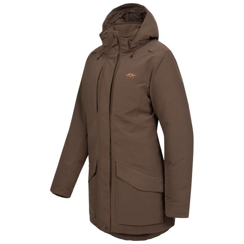A Janina női pehelykabát a legmodernebb anyagtechnológiával készült, hogy bent tartsa a meleget, és kívül tartsa a hideget. A kifejezetten a Blaser számára fejlesztett membrán két rétegből áll, vízálló, szélálló és légáteresztő. A kabát külső rétege DWR (vízlepergető) kezelést is kapott a fokozott vízállóság érdekében. A Janina kabát emellett halk anyagból készült, amely elnyeli a fényt, és megakadályozza a csillogást – így tökéletes választás lesvadászathoz vagy cserkeléshez is.