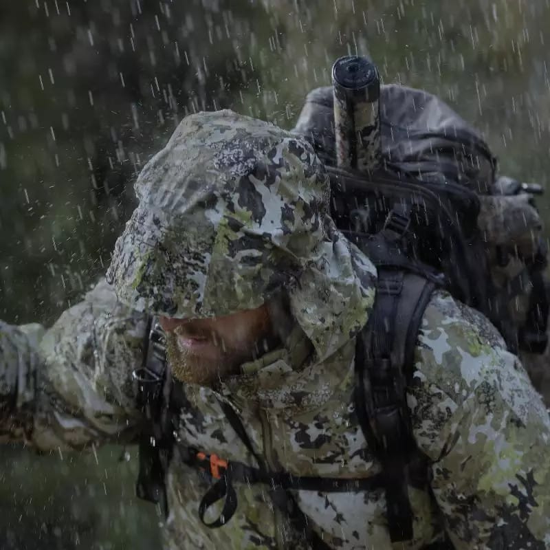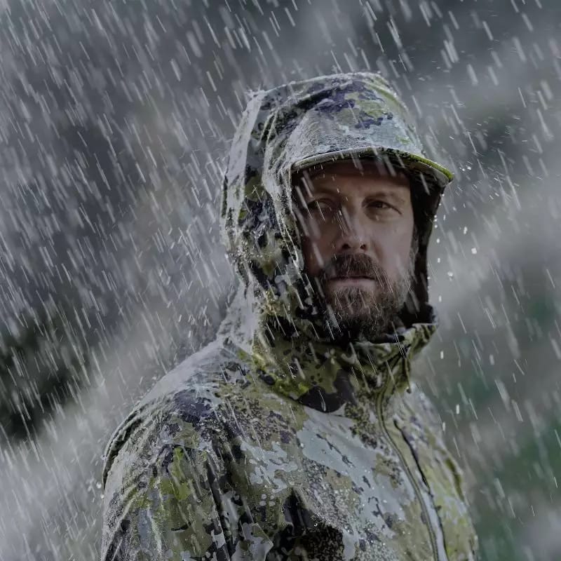 3 rétegű kabát, amely komoly időjárás elleni védelemmel és magas szintű kényelemmel van felszerelve. Vadászathoz fejlesztett japán anyag, amely 100%-os időjárás elleni védelmet nyújt a legmagasabb teljesítmény érdekében. Egyedülálló mechanikus sztreccs anyag, amely egyszerre biztosít kis súlyt és szabad mozgást. Kétirányú szellőzőnyílások a hónaljrészen.