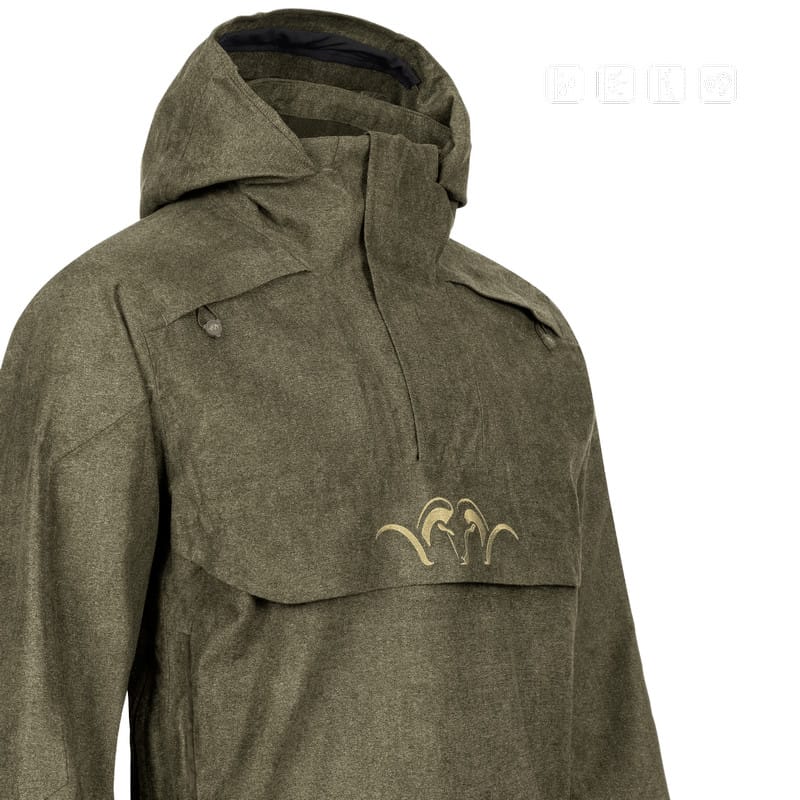 Technikai smock kabát terepen és erdőben történő vadászathoz, teljes időjárás elleni védelemmel és szuper puha, vintage hatású anyagból. Két hosszított oldalsó cipzár könnyíti meg a fel- és levételt, illetve szellőzőnyílásként is funkcionál. Nagy kenguruzseb lőszertartó hurkokkal a praktikus tárolásért.
