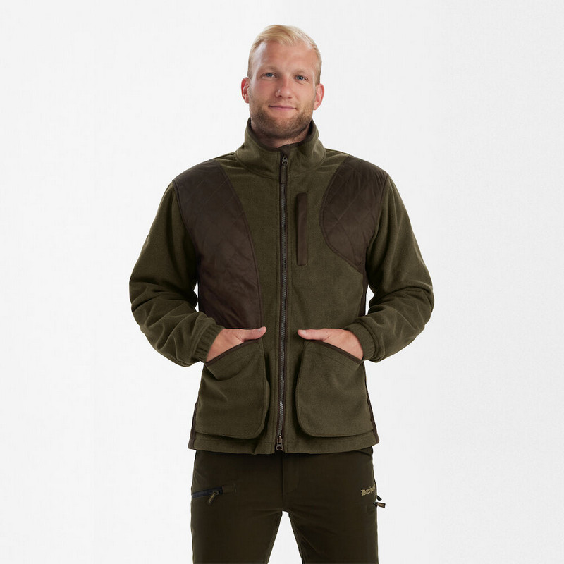A Gamekeeper Shooting Jacket a DEERHUNTER klasszikus vadászkabátja, amelyet rugalmas, vízlepergető anyagból készítettek a mozgásszabadság és a tartósság érdekében. A kabátban a DEERHUNTER® Stormliner® membrán gondoskodik a szélállóságról és a magas fokú légáteresztésről, így kényelmet nyújt aktív használat közben is. Extra váll- és mellvédelme párnázással biztosítja a lövések közbeni védelmet, míg a tágas első dobozzsebek, a cipzáras függőleges zseb és a hátulsó vadász-zseb bőséges tárolóhelyet kínálnak. Állítható derékrésze és rugalmas mandzsettái kényelmes illeszkedést adnak, a kabát könnyen tisztítható, mosógépben mosható.