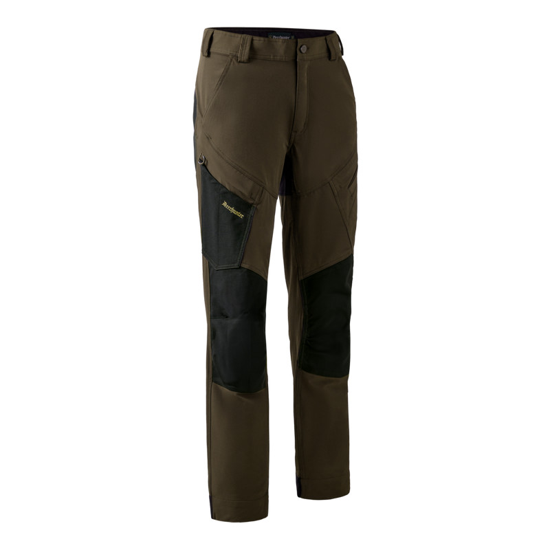 A DEERHUNTER Northward Trousers a népszerű Northward nadrág továbbfejlesztett változata, amelyet kifejezetten a kényelem, a funkcionalitás és a mozgásszabadság jegyében terveztek. A pamutszálas belső rész kellemes tapintást és optimális komfortot biztosít hosszabb viselés során, míg a négyirányban rugalmas anyag kiváló mozgékonyságot nyújt. A nadrág számos praktikus zsebbel rendelkezik, köztük rejtett cipzáras combzsebekkel, külön kés- és extra oldalzsebbel. Az előformázott, megerősített térdrész és az állítható szegély növeli a tartósságot és az illeszkedést, így ideális választás mind vadászathoz, mind mindennapi szabadtéri tevékenységekhez.
