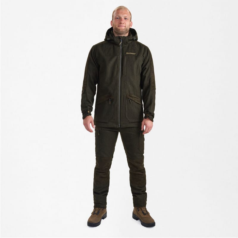 A Tatra Dzseki a vadász számára lett megalkotva, amely a hagyományos stílust – elegáns művelúr részletekkel – a funkcionalitással ötvözi. Számos praktikus zsebbel rendelkezik: rádiózseb antennatartó pánttal, cipzáras mell- és elülső zsebek, kényelmi zsebek, belső zseb, valamint cipzáros vadászati zseb, így minden szükséges felszerelés kéznél van. A kiváló minőségű gyapjúkeverék anyag természetes hőszabályozást biztosít, csendes viseletet nyújt, míg a légáteresztő hálós bélés fokozza a kényelmet aktív, hideg időben történő vadászatok során. Előformázott könyökei, állítható ujjvégei és húzózsinórral szabályozható alja a mozgásszabadságot és a személyre szabott illeszkedést szolgálják. A vízlepergető kezelés további védelmet nyújt az időjárás viszontagságaival szemben. Ez a háromévszakos dzseki a természetes meleg és a modern vadászruházat minden előnyét ötvözi.