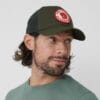 Klasszikus „trucker” típusú sapka strapabíró G-1000 alapanyagú előlappal és újrahasznosított poliészterből készült hálós hátoldallal.