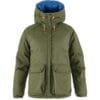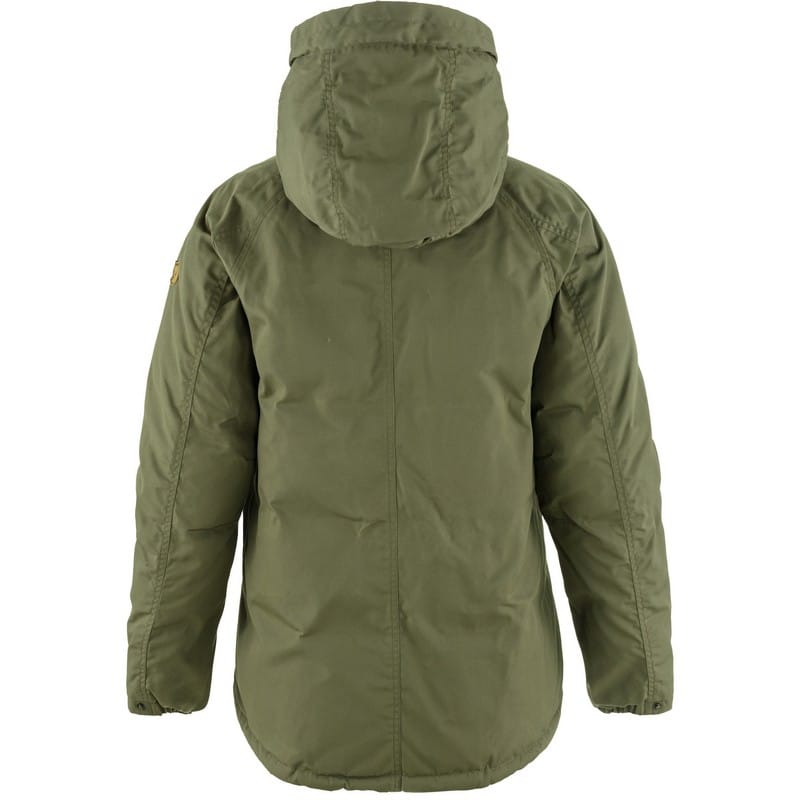 Megfordítható pehelykabát G-1000 anyagból újrahasznosított poliészterből és biopamutból, poliamid béléssel és kiváló minőségű, szigetelő pehelybetéttel. Robusztus megerősítő ruha, amely hordható kabát tetején vagy alatt. A tartósság, a melegség és a praktikus funkcionalitás optimális kombinációját adja. A fix kapucni véd a hideg széltől, és állítható, így követi a fej mozgását. A hideg kezek cipzáros oldalzsebekben melegíthetők, amelyek a G-1000 oldalán két felülről tölthető zseb mögött helyezkednek el. A kék oldalon két cipzáras kézi zseb is található. Elöl kétirányú cipzár, mindkét oldalon védőfülekkel, a G-1000 oldalán felül és alul nyomógombok. Részletek növényi cserzett bőrből. A 16-os tollkabát szél- és vízálló, a G-1000 szövet pedig viaszolható, hogy fokozott védelmet nyújtson az elemekkel és a kopással szemben. A G-1000 oldalával kifelé ez egy tartós munkaruha. Ha a láthatóságot kívánja előnyben részesíteni, viselje a kék oldalát kifelé – ez a kék az egyik leglátványosabb szín minden terepen és időjárási körülmény között. A Fjällräven Numbers Collection része.