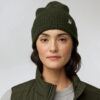 Bordázott kötés (Rib-knit): Ez a kötési technika nagyfokú rugalmasságot biztosít, így a sapka kényelmesen illeszkedik a különböző fejméretekhez anélkül, hogy elszorítaná a fejet, és hosszú távú használat után is jól tartja a formáját.