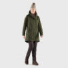 Hosszított fazonú, vízhatlan és szélálló női kabát G-1000 Silent alapanyagból, Hydratic béléssel és meleg polár bélésű kapucnival.