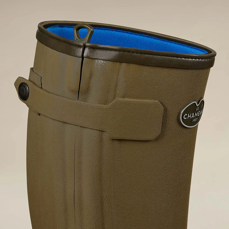 A Le Chameau ikonikus Chasseur csizmájának női neoprén bélésű változata a hideg időjárásra tervezett prémium darab. A 3 mm-es neoprén bélés kiváló hőszigetelést biztosít, a teljes hosszúságú vízálló Riri AQUAzip cipzár pedig megkönnyíti a fel- és levételt. Az aramid szálakkal erősített elülső rész extra védelmet nyújt a kopás ellen, míg a sokk-elnyelő, minden terepen jól tapadó Grip/Cross talp stabilitást és kiváló ívtámaszt ad. Ötféle vádliszélességben elérhető, hogy tökéletesen illeszkedjen. Fontos megjegyezni: a neoprén kiválóan szigetel, azonban nem légáteresztő, így melegebb időben vagy intenzív használat közben izzadás előfordulhat.