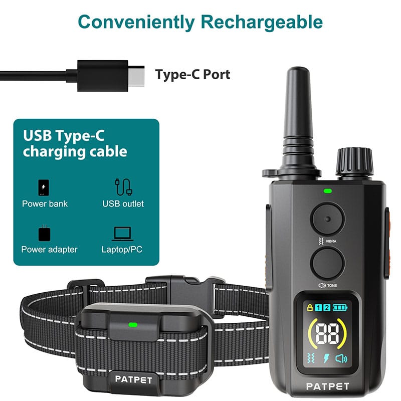 A Patpet P643 egy 600 méteres hatótávolságú elektromos nyakörv, három funkcióval (hang, rezgés, impulzus), vízálló vevővel és kézreálló távirányítóval.