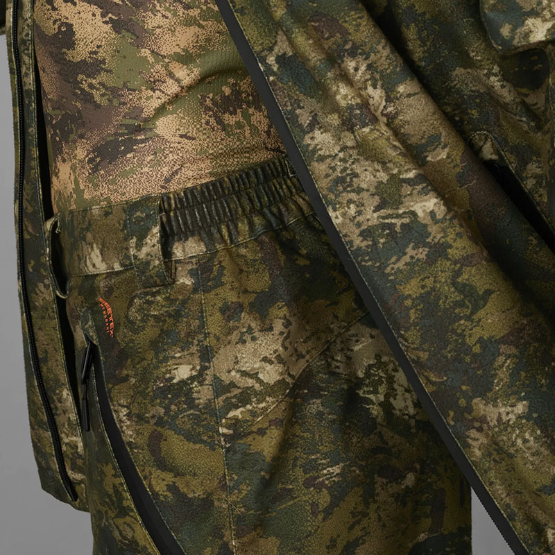 A nadrág szél- és vízálló SEETEX® membránnal rendelkezik, amely 10.000 mm-es vízoszlop nyomásnak is ellenáll – így akkor is szárazon tart, ha hirtelen zápor ér vadászat közben.