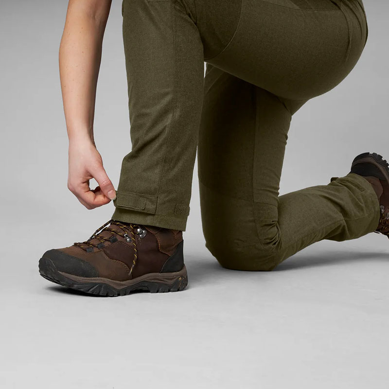 Elegáns, nőies szabású, teljesen víz- és szélálló vadásznadrág rugalmas twill anyagból – kényelmes és praktikus választás aktív vadászathoz.
