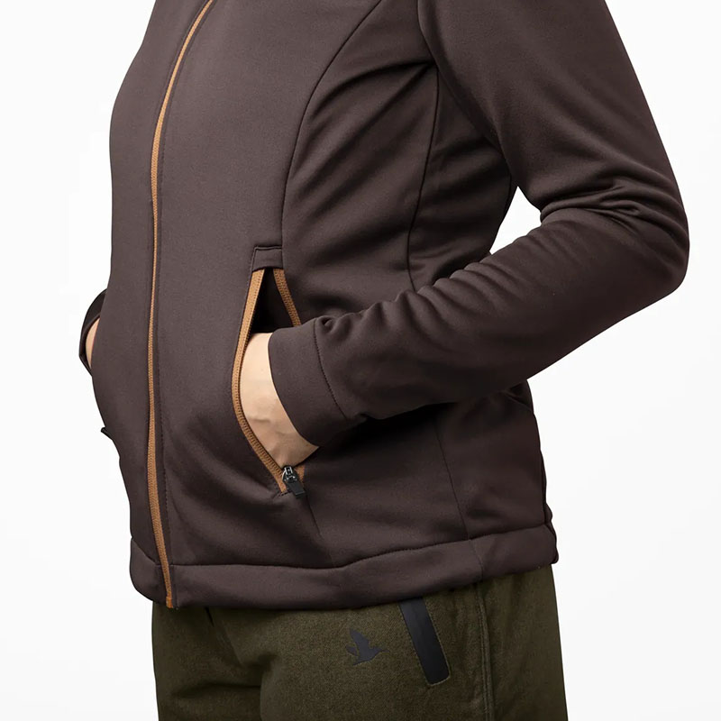 A Seeland Emily fleece egy nőies szabású, puha tapintású, hátoldalán bolyhozott fleece felső, amely egész évben praktikus viselet. Melegebb időben tökéletes külső rétegként, hűvösebb napokon pedig kiválóan alkalmazható aláöltözetként. A magas gallér védi a nyakat a széltől, a teljes hosszúságú cipzár pedig kényelmes öltözködést tesz lehetővé. Két nagy elülső, cipzáras zseb biztosít helyet a fontosabb kiegészítőknek, míg az alsó szegély húzózsinóros szabályozása kényelmes illeszkedést biztosít.