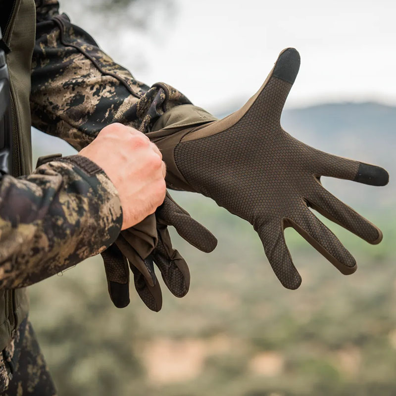A Grip Gloves a modern vadász igényeihez készült, ahol a funkcionalitás és a kényelem egyszerre fontos. Könnyű, teljesen rugalmas szövetből készül, amely pontos és kényelmes illeszkedést biztosít. Az érintőképernyő-kompatibilis betéteknek köszönhetően a mutatóujj és a hüvelykujj használható okoseszközökhöz anélkül, hogy le kellene venni a kesztyűt. A tenyéren és az ujjbegyeken elhelyezett csúszásgátló részletek stabil fogást adnak, így különféle vadászati helyzetekben megbízható társ. Az InVis® álcázás természetes, fraktálokra épülő mintázatával segít beleolvadni a környezetbe.
