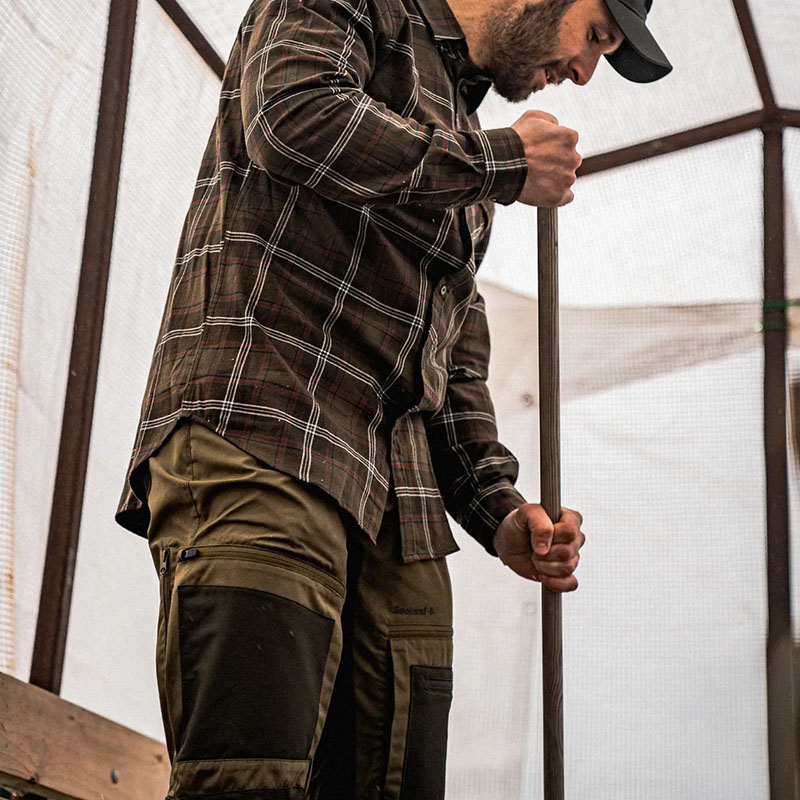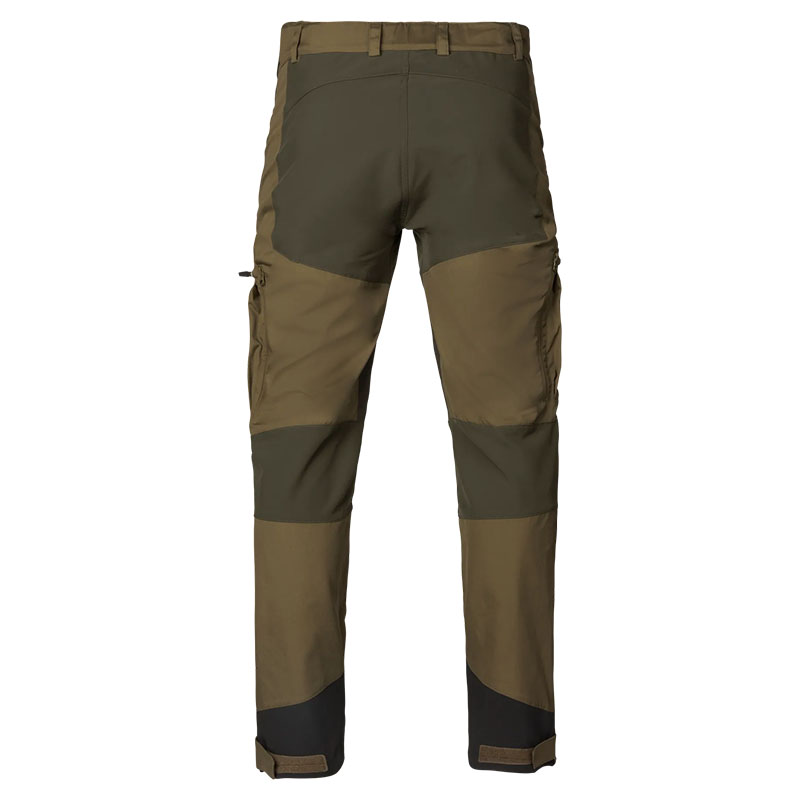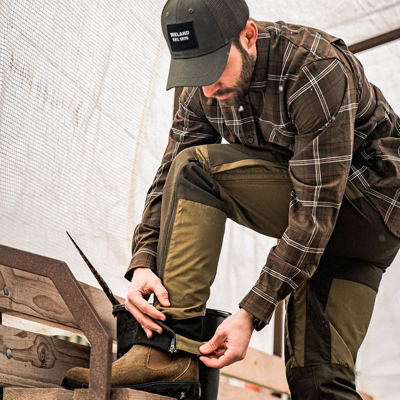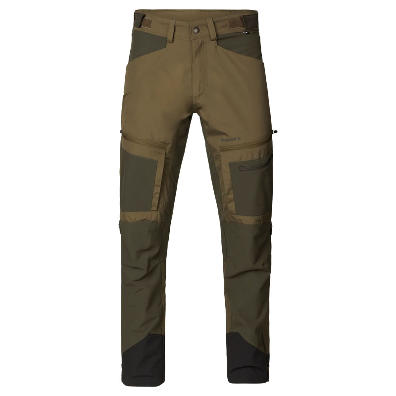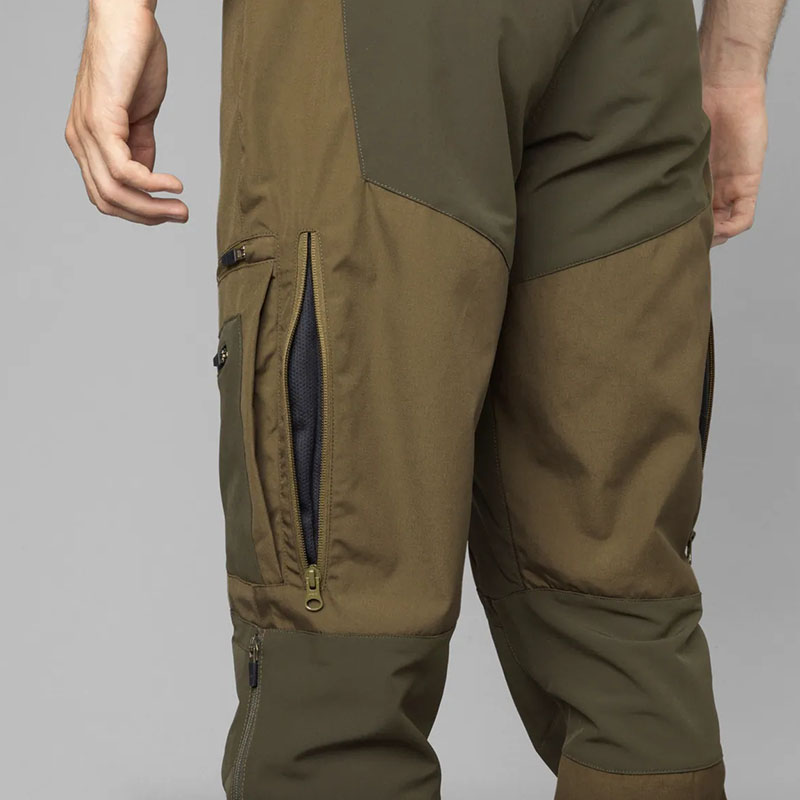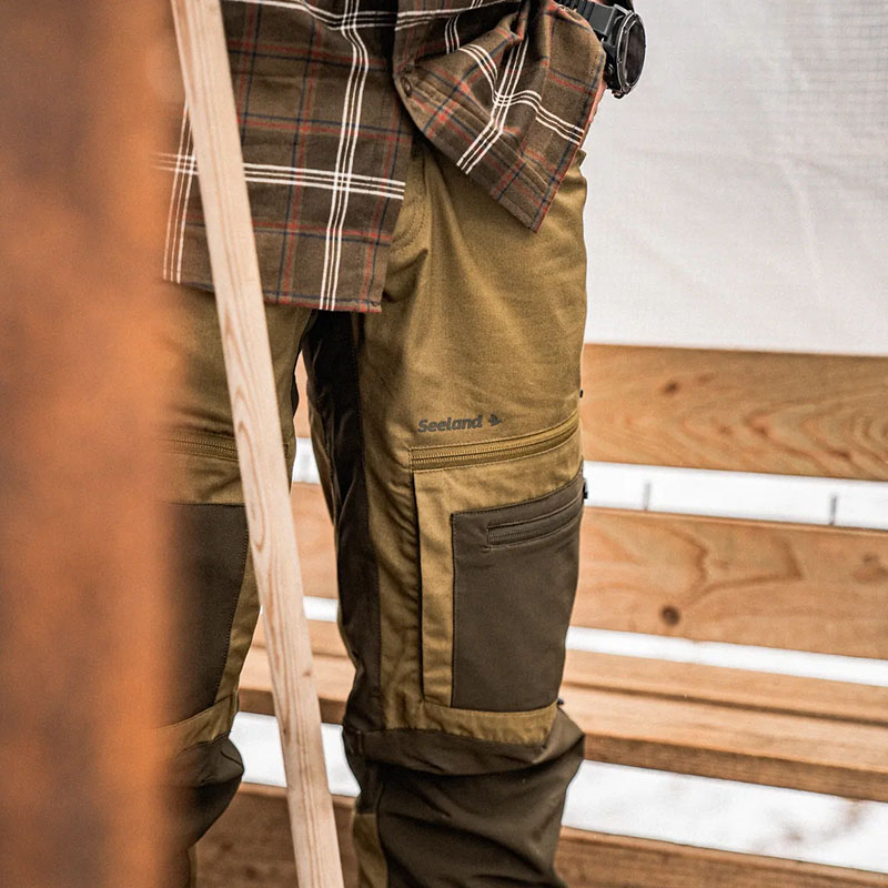 A Seeland Hemlock nadrág ötvözi a fenntartható alapanyagokat és a praktikus kültéri funkcionalitást. Újrahasznosított poliészterből és organikus pamutból készült, a kényelmes mozgást pedig rugalmas betétek segítik. A három cipzáras combzseb bőséges tárolóhelyet kínál, míg a zsebeknél található szellőzőnyílások és a kétirányú, extra hosszú szárszellőző cipzár biztosítják az optimális hőszabályozást. Az előformázott térdrész, az erősített szárvég és az állítható bokarész garantálják a tartósságot és a tökéletes illeszkedést. Két színváltozatban kapható – ideális választás a jövőre gondoló vadászok számára.