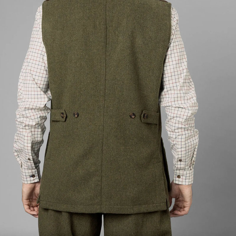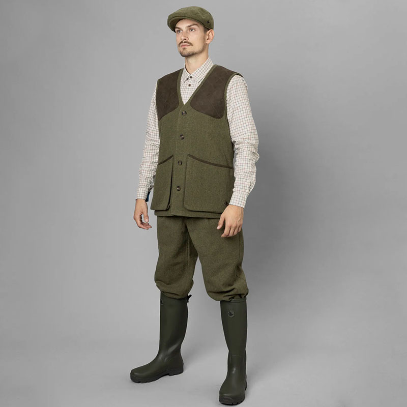 A Hillside mellény a klasszikus stílus és a vadászati funkcionalitás tökéletes egyensúlyát nyújtja. Gyapjúkeverék anyagával, steppelt vállbetéteivel és tágas zsebeivel méltó választás azok számára, akik hagyományos megjelenés mellett a praktikumot is fontosnak tartják.