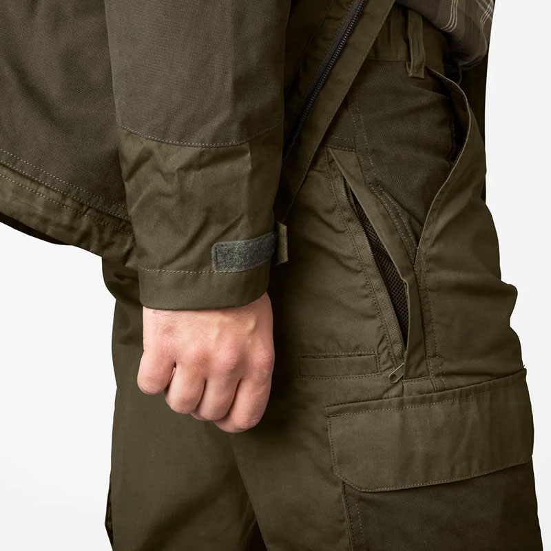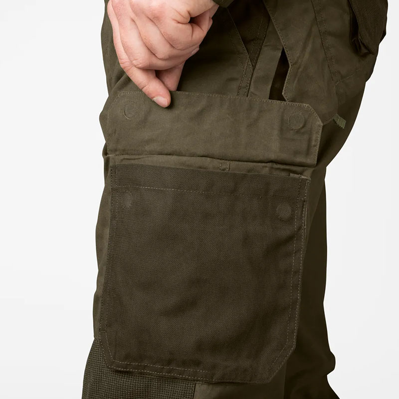 A Seeland Key-Point Elements nadrágot kifejezetten olyan vadászatokra tervezték, ahol a körülmények nem kímélnek sem embert, sem ruhát – például kisvad vadászatra bozótos, sűrű növényzettel borított területeken. A nadrág viaszos pamut-poliészter anyagból készült, az elülső részen megerősített panelekkel. A két nagyméretű combzseb mágneses záródással rendelkezik, ezen kívül található rajta egy külön készseb is. A derékrész rugalmas a kényelmes illeszkedés érdekében. A beépített cipzáras szellőzők segítenek a hőszabályozásban, így aktív mozgás közben is komfortos viselet. A beépített SEETEX® 10.000/10.000 membrán garantálja a víz- és szélállóságot, valamint a légáteresztő képességet.
