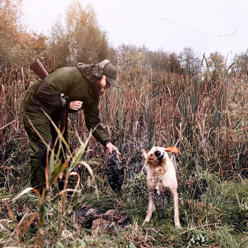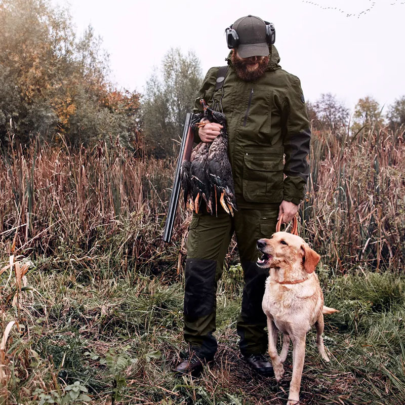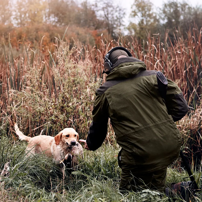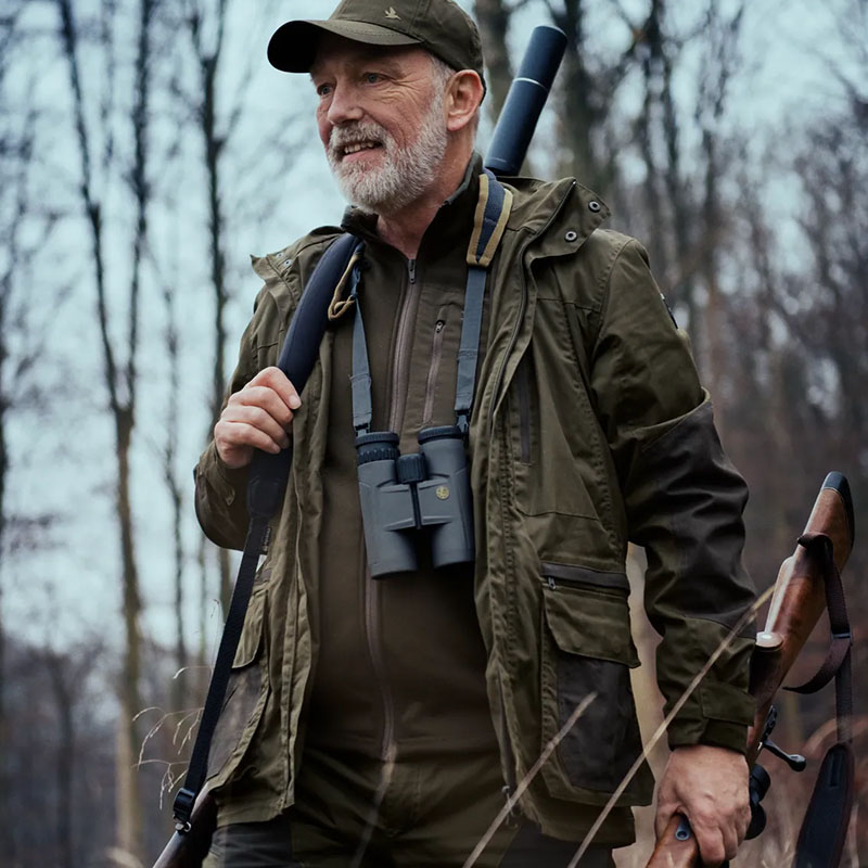 Időtálló, klasszikus vadászdzseki viaszos felülettel és erős kialakítással – elegáns megjelenés társas vadászaton is.