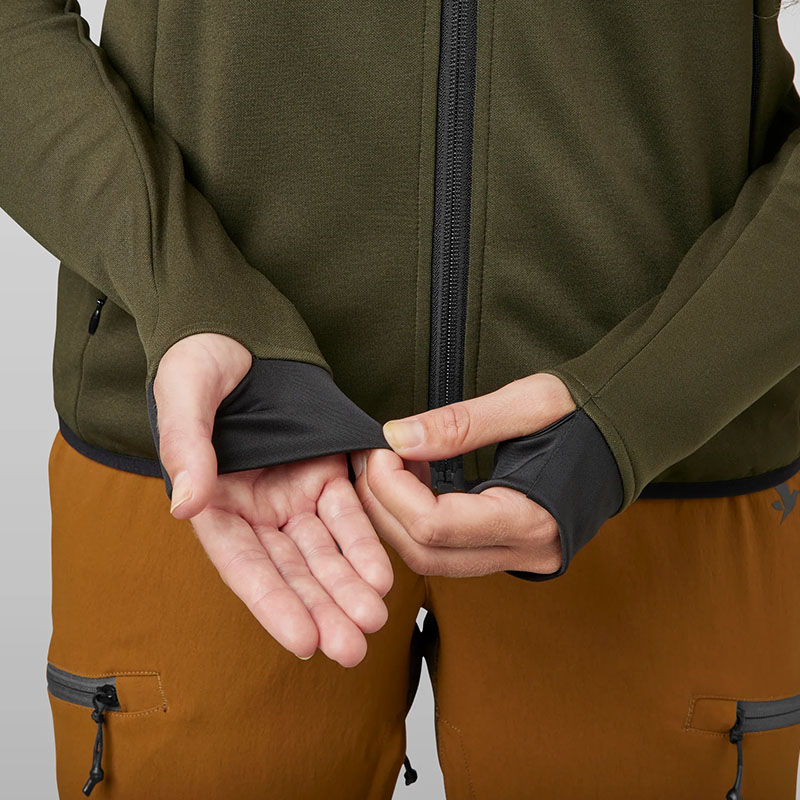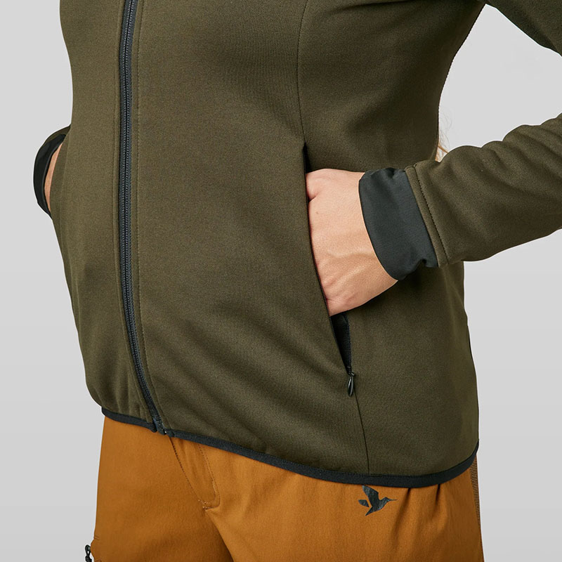 A Seeland Power fleece női pulóver igazán sokoldalú darab, amely gyorsan a kedvenceddé válhat. Puha, magas rugalmasságú anyagból készült, amely kiválóan követi a test mozgását. A beépített kapucni szorosan illeszkedik az arc köré, így hatékony védelmet nyújt a szél és a hideg ellen. A pulóveren két cipzáras elülső zseb található, az ujjak végén pedig gumírozott mandzsetták és hüvelykujj-bújtatók gondoskodnak a kényelemről és a jobb illeszkedésről. A karcsúsított szabás miatt érdemes egy mérettel nagyobbat választani a kényelmesebb, normál illeszkedéshez.