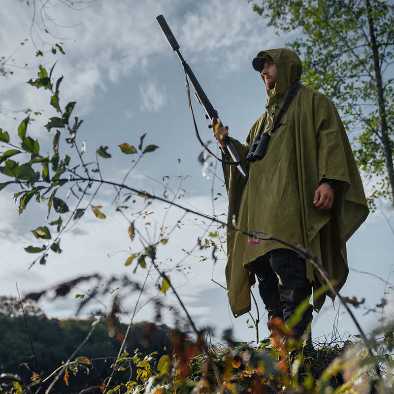 A Taxus esőponcsó egy vékony, rendkívül könnyű poncsó, amely saját mellzsebébe összehajtható, így szinte észrevétlenül viheted magaddal vadászatra vagy más szabadtéri tevékenységre. A szél- és vízálló SEETEX® membrán biztosítja a légáteresztő képességet, így nem halmozódik fel a pára a belső oldalon, mint a klasszikus katonai poncsóknál.