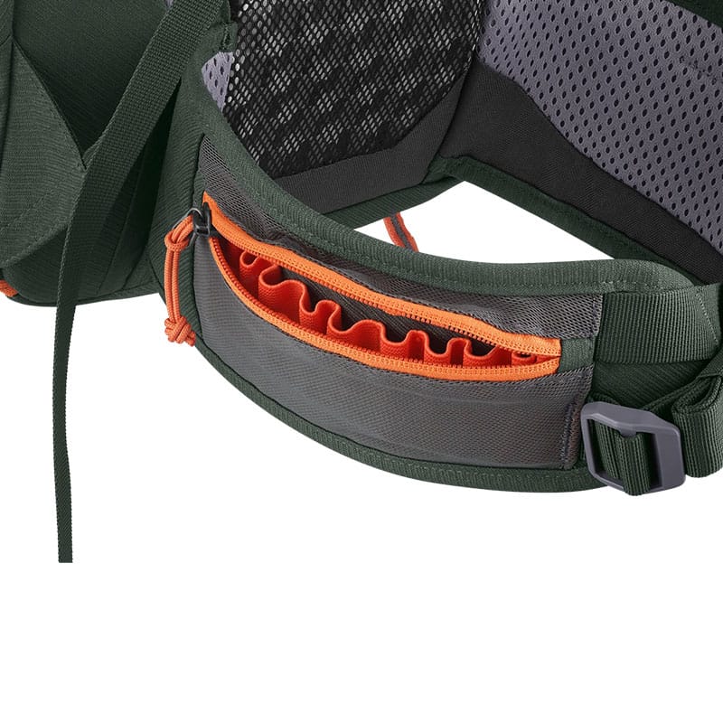 • A kihajtható oldalsó rekesz a Fid-Lock® gyorsfogó gombbal lehetővé teszi a lőfegyver gyors elérését bármikor anélkül, hogy le kellene tenni a hátizsákot. A lőszerek a csípőövön lévő tartóban, mindig könnyen elérhető helyen, zaj okozása nélkül tárolhatók.