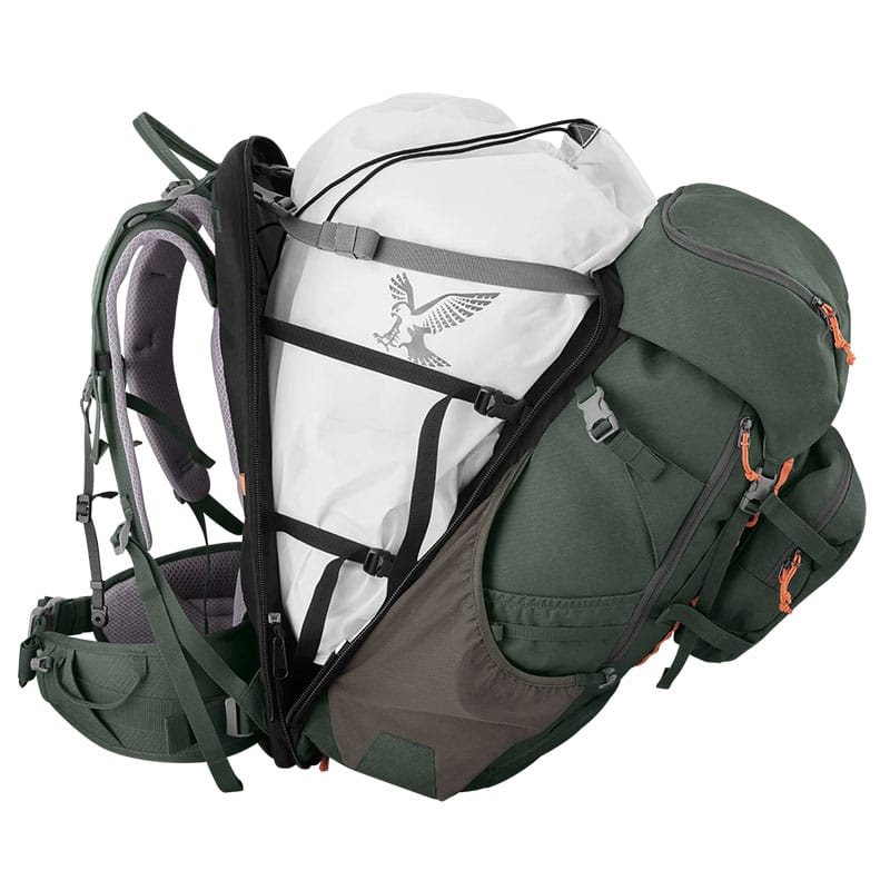 - A rugalmas oldalsó rekesz gyors hozzáférést biztosít az olyan tárgyakhoz, mint a céltávcső és az állvány. A kompressziós pántok lehetővé teszik, hogy a hátizsákot bármikor az egyéni igényeihez igazítsa.