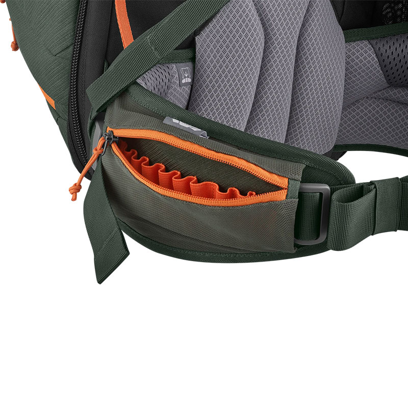 - A hátizsák oldalsó kihajtható fegyverrekesszel rendelkezik Fid-Lock® gyorsfogó gombbal. Ez lehetővé teszi a gyors hozzáférést a lőfegyverhez. Nem kell letenni a hátizsákot a lőfegyver elővételéhez, és mindkét kezed szabadon maradhat séta közben. A csípőövön található tartó helyet biztosít a lőszer tárolására, így bármikor csendes és gyors hozzáférést biztosít.